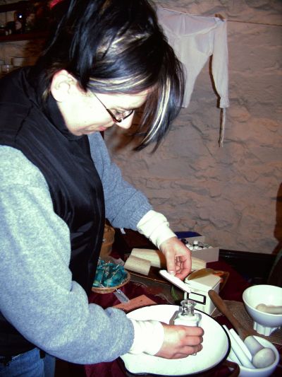 Markttreiben auf dem Schloss Colditz, hier seht Ihr Anja bei der Herstellung von Badesalz....