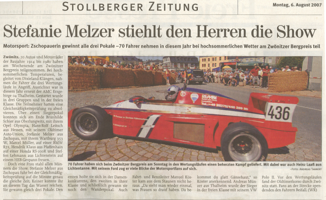 Freie Presse Stollberg (6.8.07) - Zwönitzer Bergpreis 2007