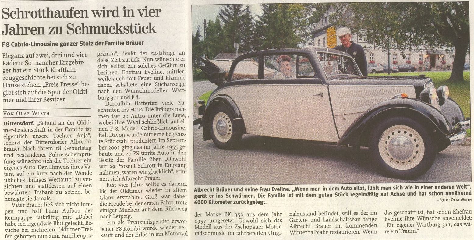 Freie Presse Zschopau (4.9.07) - Vorstellung F8 der Familie Bräuer